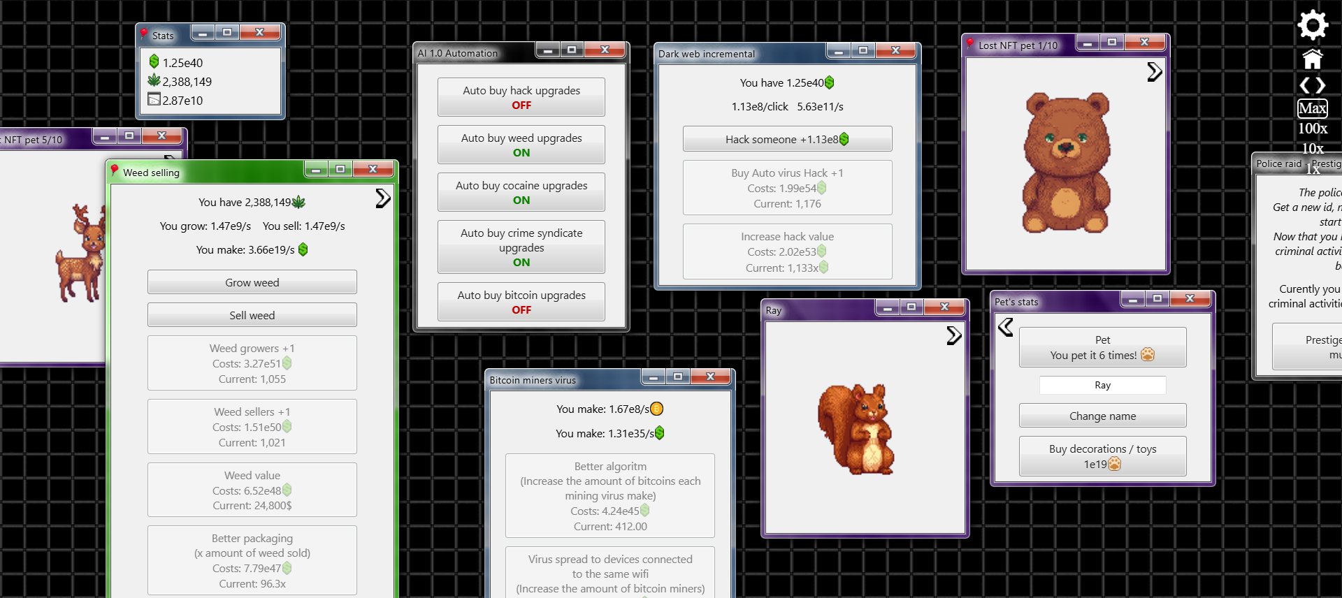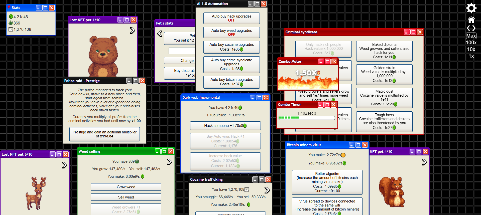 You'll make more and more money while hacking, selling weed, cocaine and bitcoins.